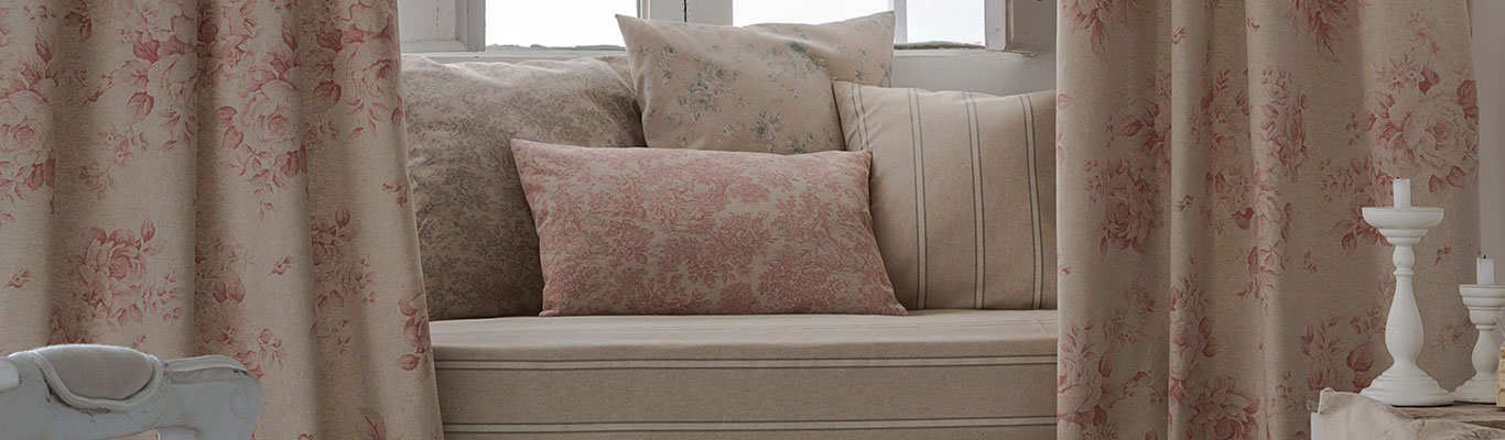 This stunning collection of delicate fabrics in muted shades is perfect for creating a timeless, shabby chic look in your home. All fabrics are washable at 30 degrees and suitable for both curtains and blinds, as well as light-medium weight upholstery.