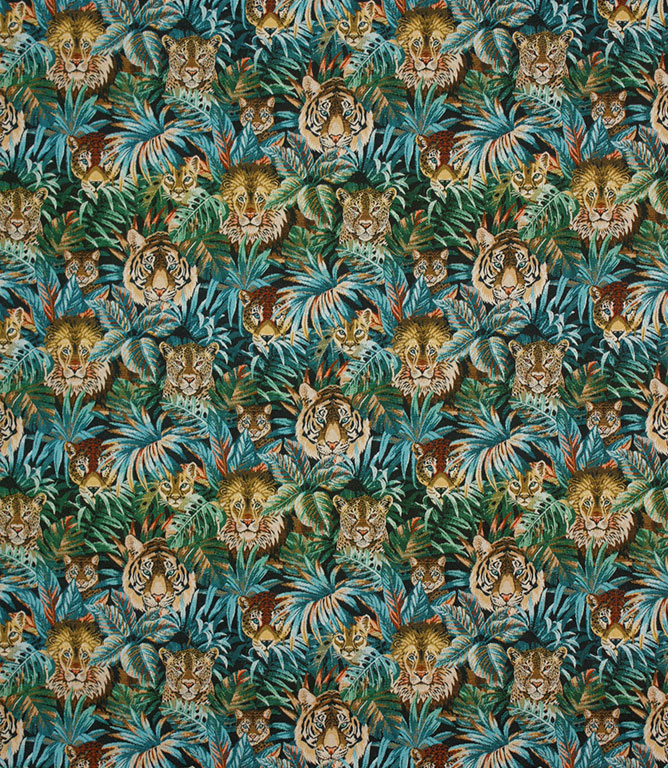 Big Cats is a woven jacquard with a vibrant wildlife themed design and can be used for curtains and upholstery.