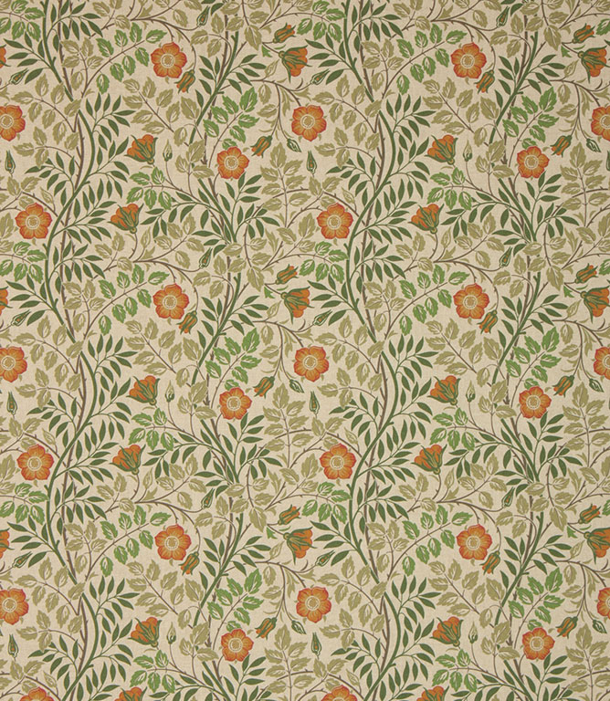 This floral fabric has a traditional, flowing design of trailing branches and leaves with joyful flowers throughout.