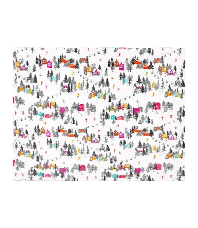 Add a pop of festive colour with the Aspen Fleece Throw in Snow, featuring a playful alpine village print in vibrant tones on soft white fleece.