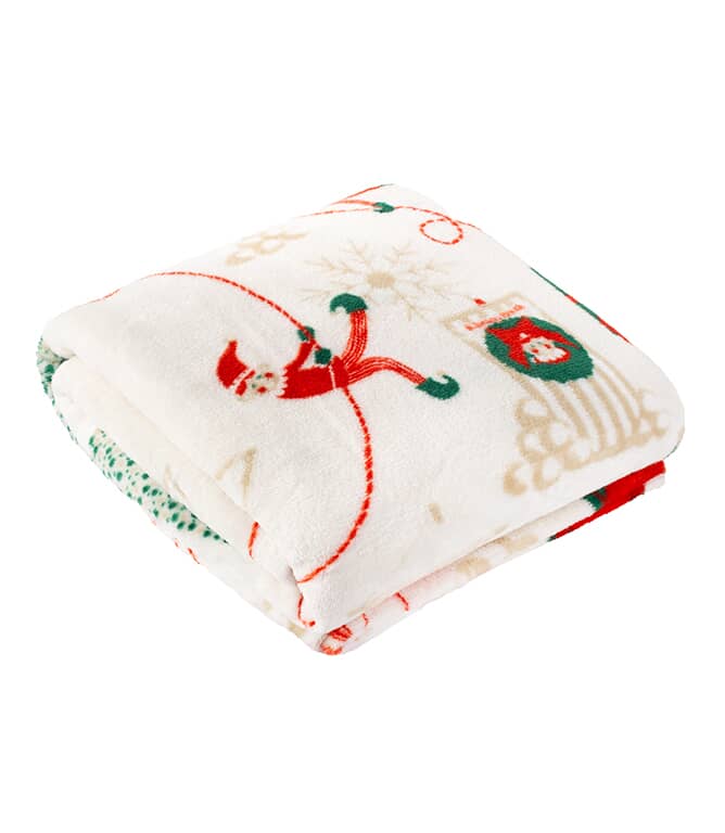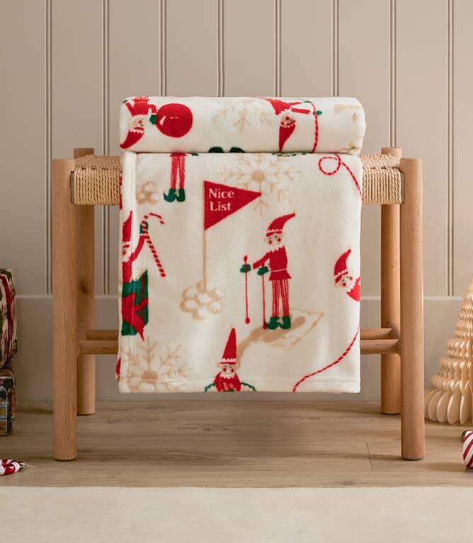 Featuring a joyful scene of busy elves, Christmas trees, gifts and snowy North Pole touches, this printed throw brings a playful twist to any sofa, armchair or child’s bedroom. It’s lightweight, easy to care for, and sure to delight both little ones and grown-ups alike.
