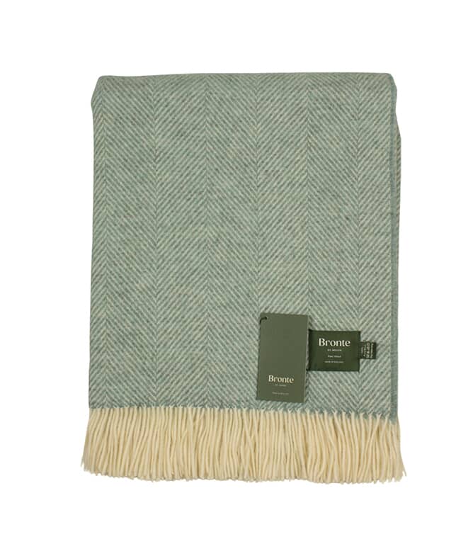 This timeless throw by Moon has a classic herringbone design in hues of blue and sage with cream fringed edges. A great choice to add into rooms for a comforting feel, layer onto a sofa amongst cushions for the perfect cosy look.