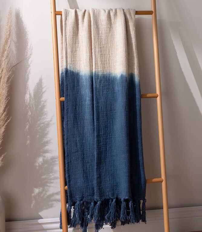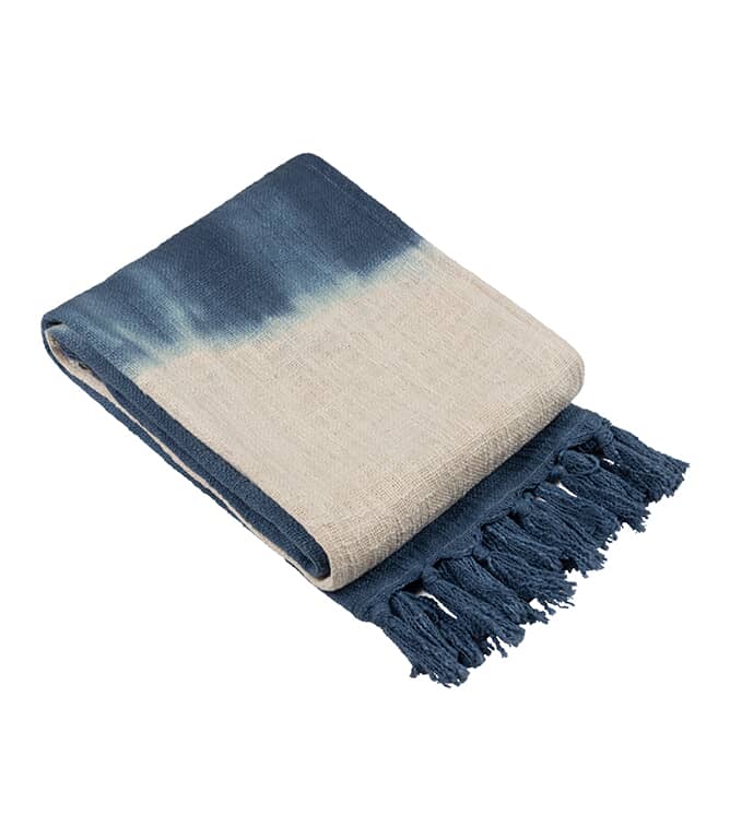 Add a splash of relaxed colour to your home with the Mizu Dip Dye Fringed Throw, made from soft washed cotton with a distinctive dip-dye finish.