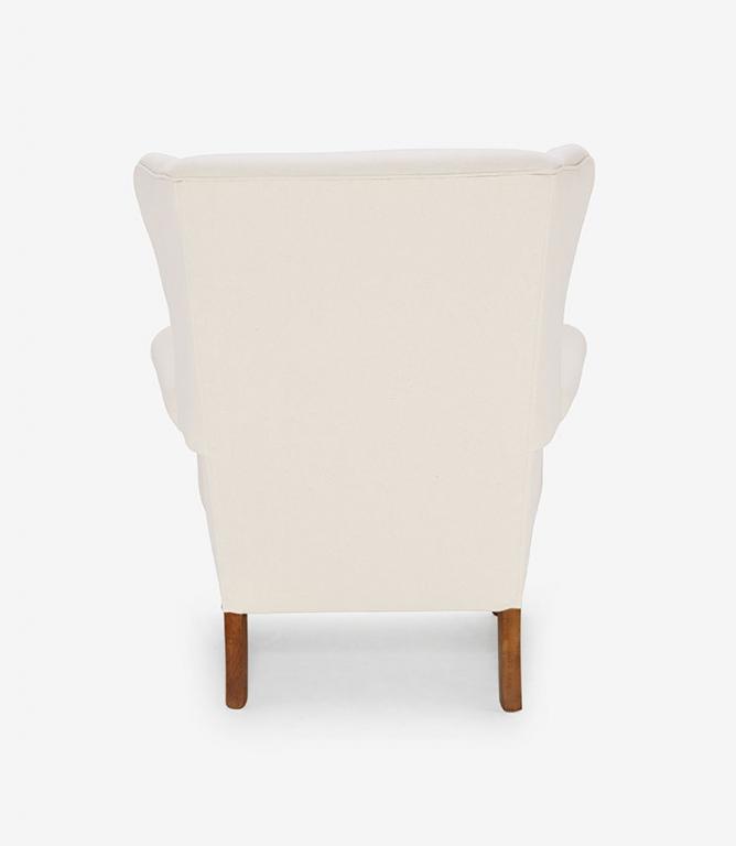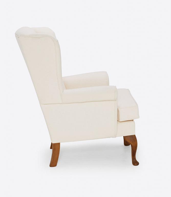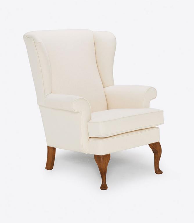 Handcrafted in the UK, this chair has a solid beech frame and can have light, medium or dark oak legs. The shape is a traditional wing chair that will be a timeless addition to your home.