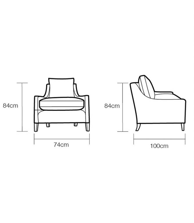 The measurements are width 74cm, height 84cm and depth 100cm.