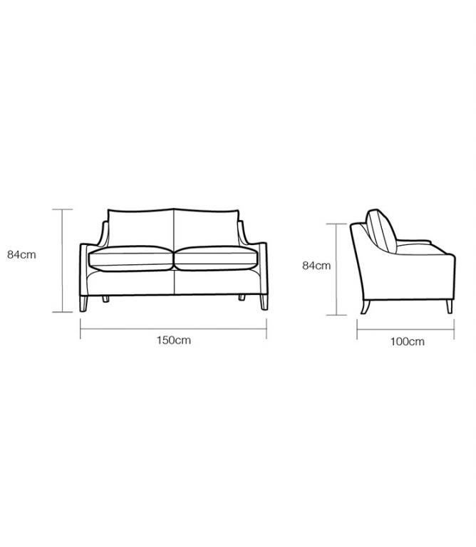 Width is 150cm, 84cm height, 100cm depth. Fabric needed is 12-14 meters.
