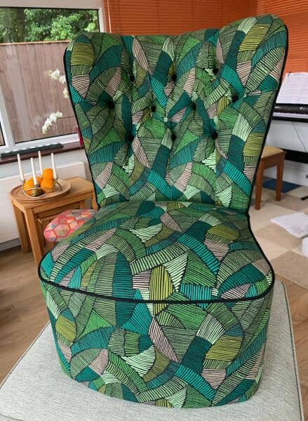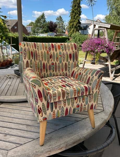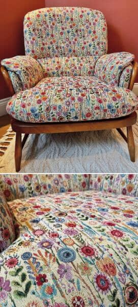 Amy from @joy_upholstery has brought this classic Ercol chair back to life with our Rosalia fabric, and it looks absolutely stunning. The playful floral design, filled with bright colours and intricate detail, perfectly complements the mid-century shape of the chair, giving it a fresh yet timeless feel.