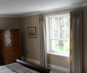 We furnished this country property throughout, with blinds, curtains, poles, cushions etc. With a combination of contemporary and traditional styles, to suit the client's requirements.