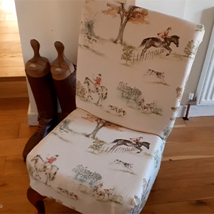 I've been sewing since I was a very little girl, firstly making clothes, but now I like to make cushions and I like to do upholstery. I've recovered this chair many times. This hunting fabric is just perfect. It was so easy to use. Fabulous quality.