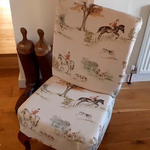 I've been sewing since I was a very little girl, firstly making clothes, but now I like to make cushions and I like to do upholstery. I've recovered this chair many times. This hunting fabric is just perfect. It was so easy to use. Fabulous quality.