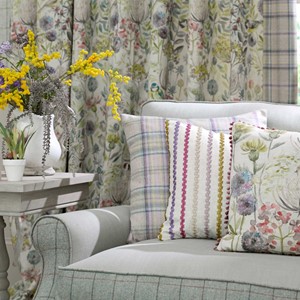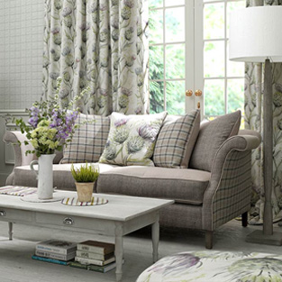A bold botanical best-seller, Thistle Glen features hand-painted Scottish thistles in soothing tones of lilac, sage and soft cream. The generous scale of the design makes it perfect for statement curtains or a showstopping blind, especially in rooms with lots of natural light. This fabric strikes the perfect balance between striking and serene, and it works beautifully with coordinating check fabric or soft pastels for a complete country home look.