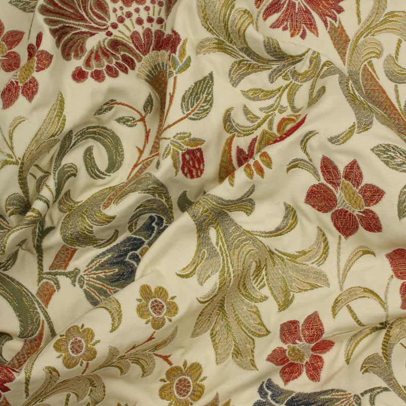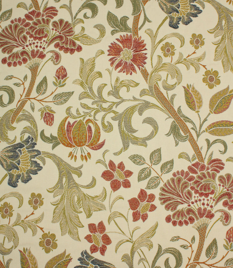 Hensleigh is a beautifully woven cotton-blend fabric featuring a bold trailing floral design inspired by historic textiles and Arts & Crafts motifs. With a soft sheen and a detailed pattern in classic colourways, this fabric is perfect for adding timeless character and richness to your interiors. The design is full of movement and intricacy, making it ideal for larger soft furnishings where the pattern can be fully appreciated.
