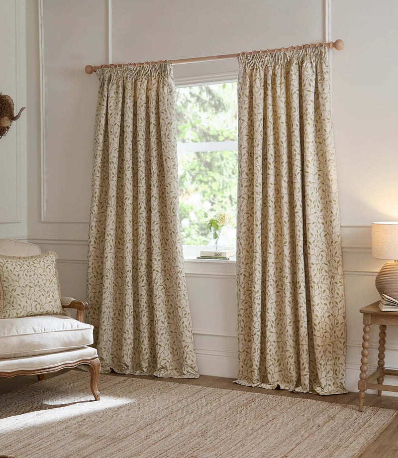 The Cervino Ready-Made Pencil Pleat Curtains in Lichen by Voyage Maison, offer a refined and versatile option for dressing your windows. Featuring a subtle jacquard weave with a softly repeating leaf motif, they bring a sense of calm and timeless style to both traditional and modern interiors.