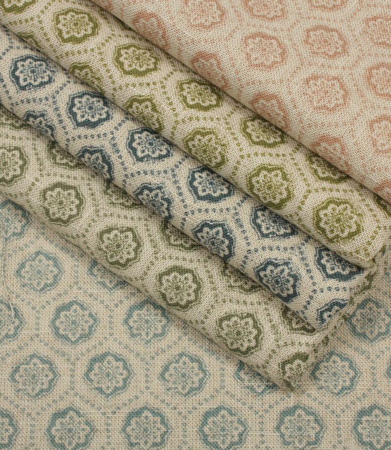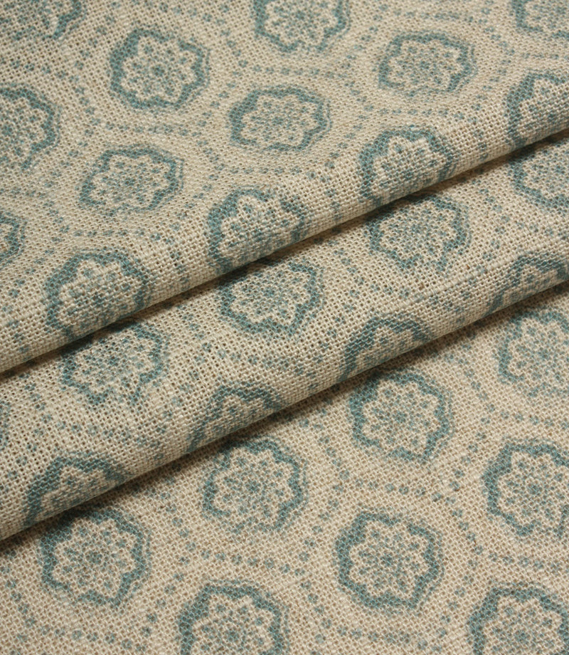 Crafted from a beautiful linen blend, Cotswold Clover features a delicate floral medallion motif, reminiscent of traditional block prints. The subtle, repeated design adds gentle texture and visual interest without overwhelming a space - perfect for those seeking a balanced, understated look.