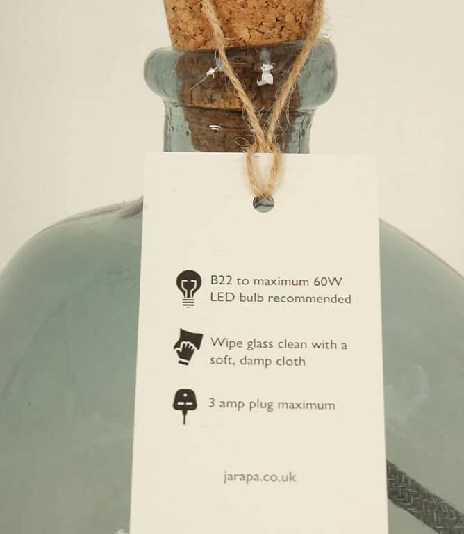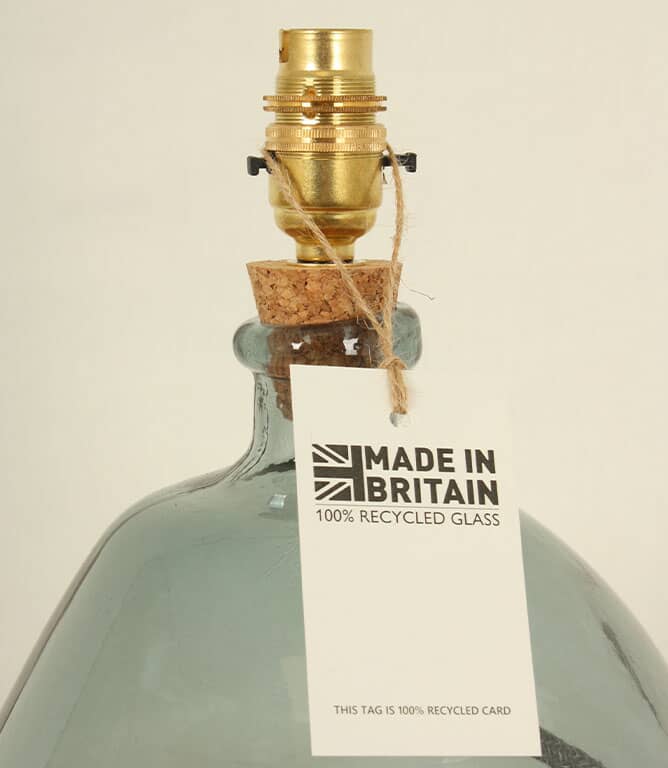 The recycled glass is made in Spain, cork is from Portugal and all lamp fittings are made in the UK.