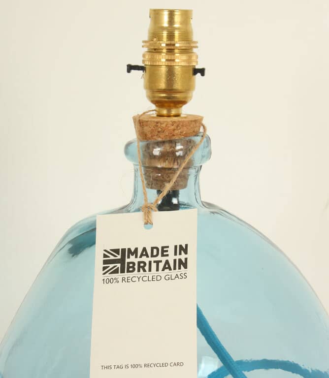 The recycled glass is made in Spain, cork is from Portugal and all lamp fittings are made in the UK.
