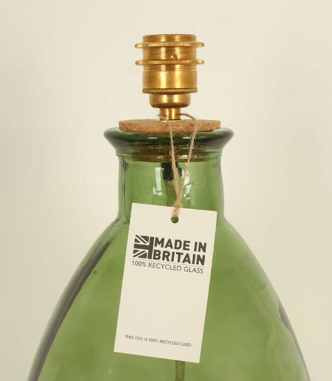 The recycled glass is made in Spain, cork is from Portugal and all lamp fittings are made in the UK.