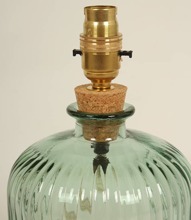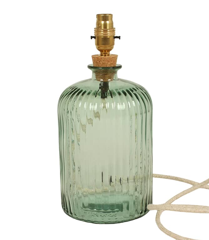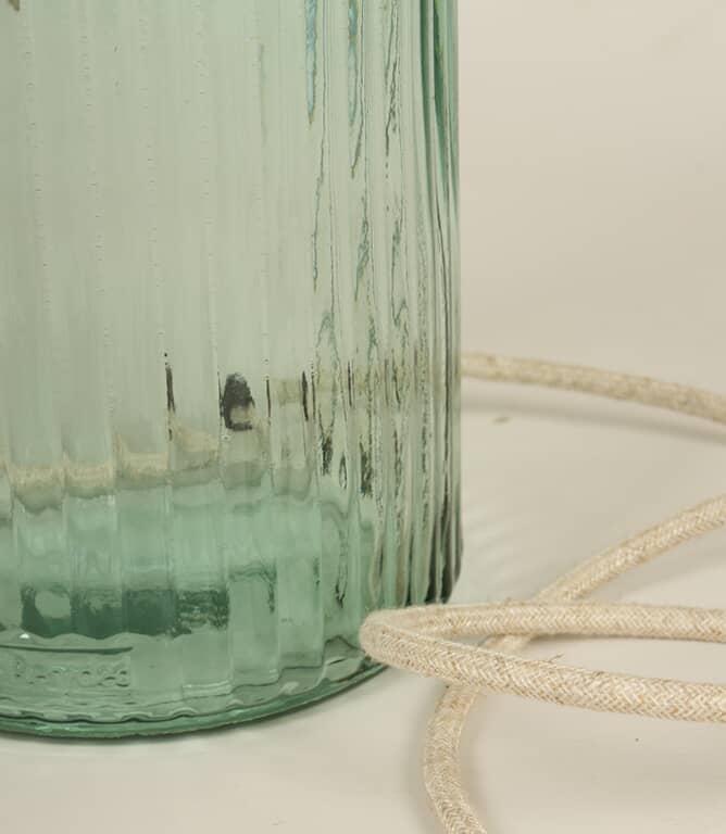 A ribbed glass lamp base in soft natural green, handcrafted from 100% recycled glass with subtle artisanal character.