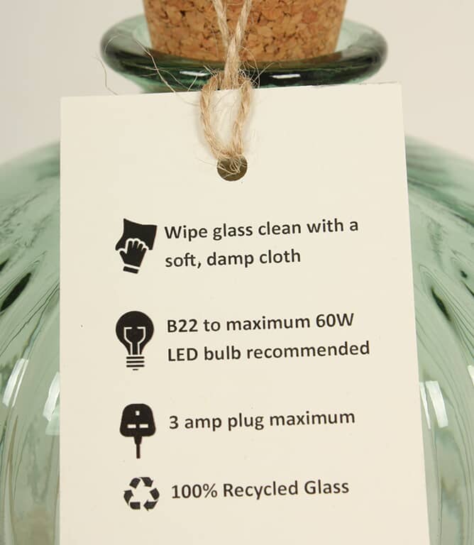 - Composition: 100% Recycled Glass