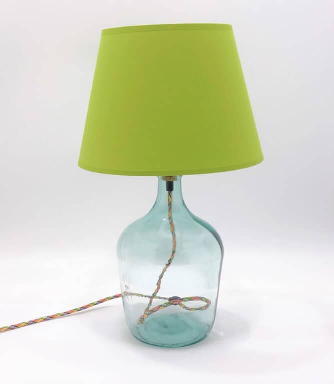 The Moreton Recycled Glass Lamp has a classic demijohn shape and has a cream coloured flex.