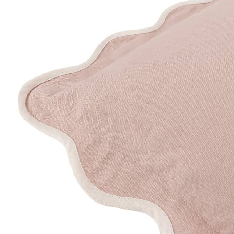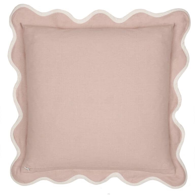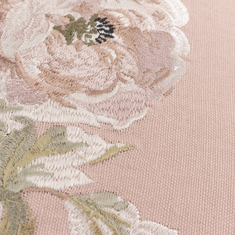 The Adele Embroidery Cushion features a traditional floral design in a soft rose shade and embroidery detail.