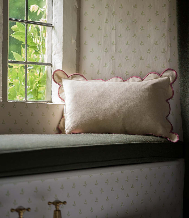 The Scallop Cushion is an effortlessly elegant piece that introduces gentle structure and thoughtful detailing to an interior. Its softly curved scalloped edge, finished with a contrasting trim, creates a decorative silhouette that feels both timeless and quietly distinctive. The natural linen-look fabric adds warmth and subtle texture, making it perfectly suited to country homes, relaxed contemporary spaces or layered traditional schemes.