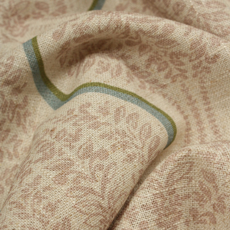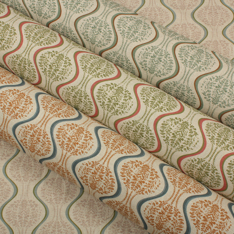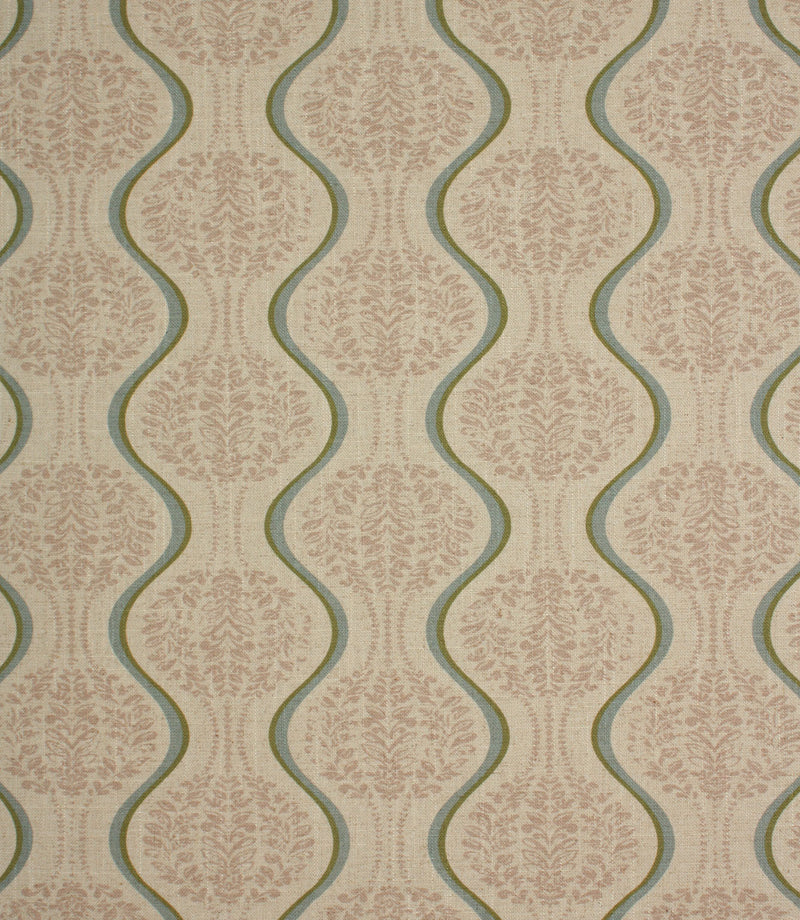 Linmere features a gentle wave-like trellis pattern, framing a stylised botanical motif, perfect for bringing subtle structure and movement into your interiors. The curved pattern offers a timeless look that suits both classic and contemporary spaces. The soft, cotton-linen texture adds warmth and a relaxed, organic feel.