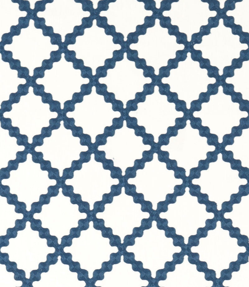 From the Oakham collection by Scion, Swithland Embroidery reimagines a classic trellis with a charming twist. A rik rak motif forms the lattice shape, giving the geometry a softer, more playful rhythm. The crewel-style embroidery adds gentle texture and dimension, creating a subtly quilted effect that feels both crafted and contemporary.