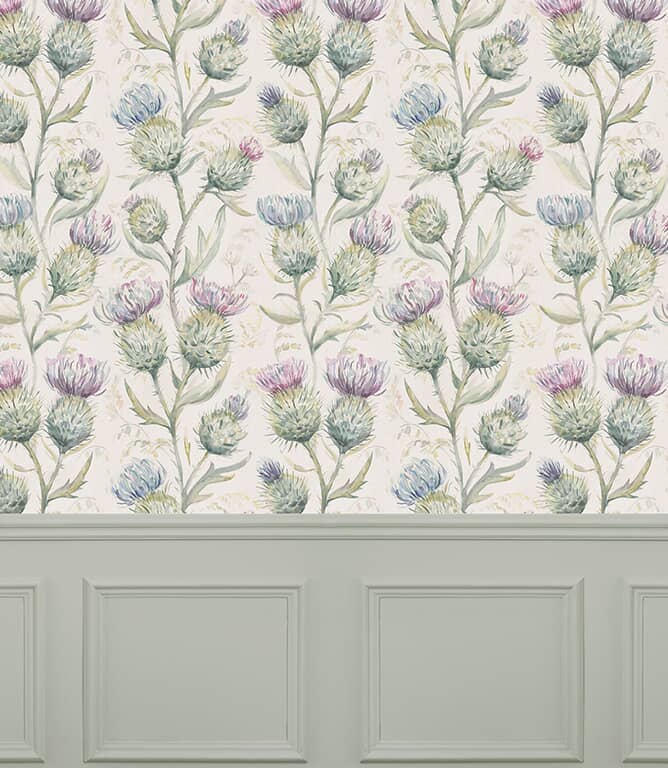 Thistle Glen Spring Wallpaper by Voyage Maison is a wide-width wallpaper that captures the beauty of Scotland’s national flower in a painterly watercolour style. The oversized thistle motifs create an elegant yet bold effect, perfect for feature walls and adding a touch of nature-inspired artistry to your interiors. The soft matte finish enhances the hand-painted quality of the design, making it equally suited to classic country homes and contemporary spaces looking for character.